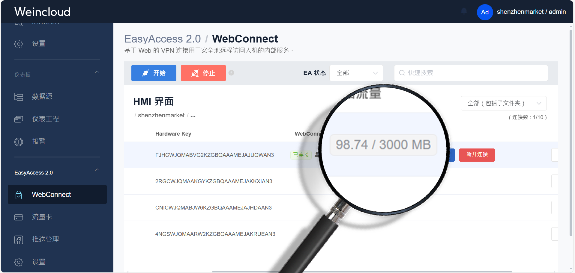 免安裝App,Weincloud推出全新網頁版遠程連接服務WebConnect!通過WebConnect,用戶輕松連接EasyWeb、WebView、VNC,或同一域的網頁服務,隨時查看并修改HMI的各項設置。