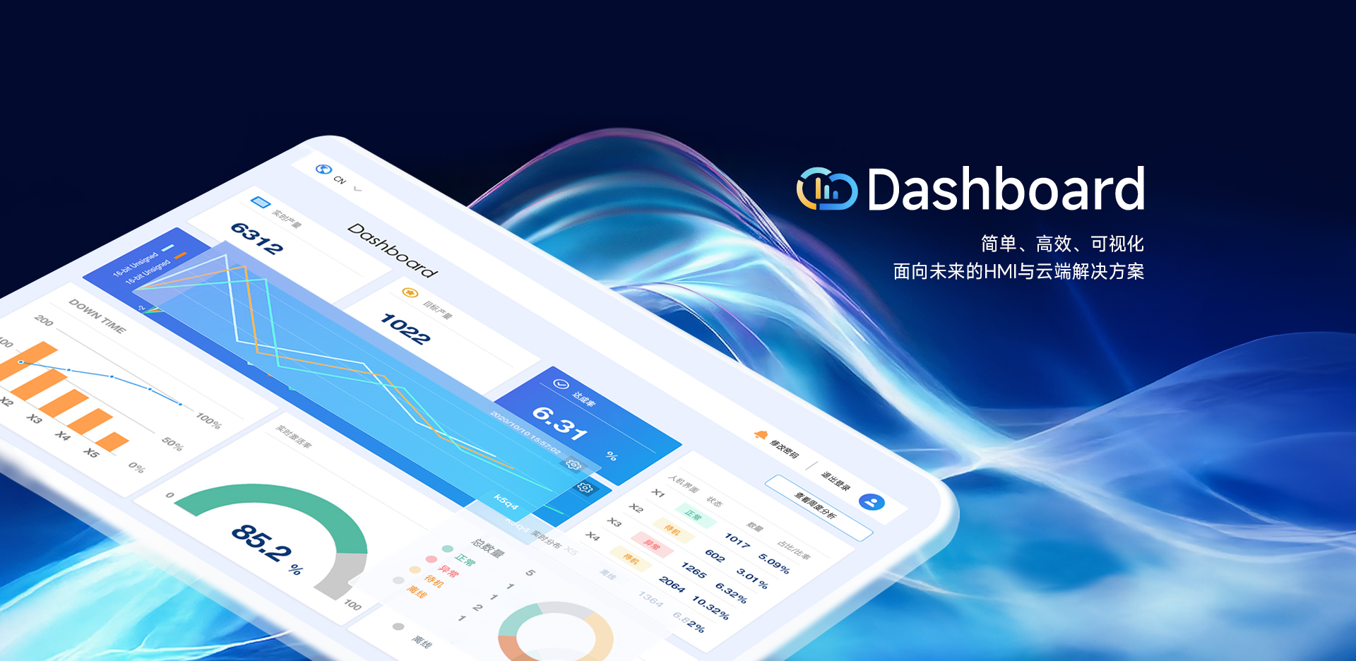 Weincloud 集結EasyAccess2.0遠程監(jiān)控服務及Dashboard云端儀表服務,將設備資料數(shù)據(jù)上云并以視覺化呈現(xiàn),協(xié)助管理者實時掌控現(xiàn)場產線狀態(tài)。